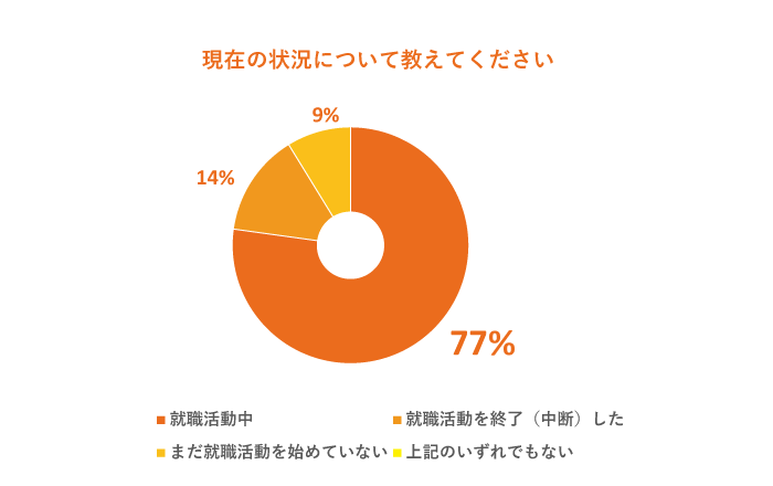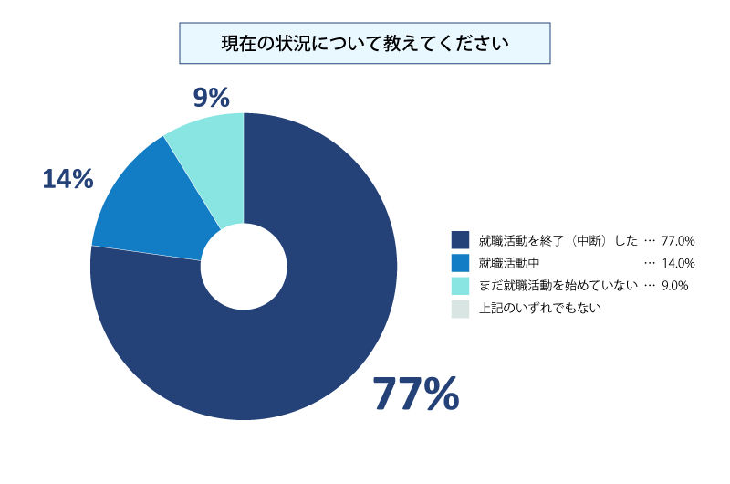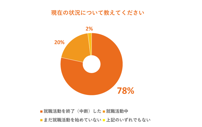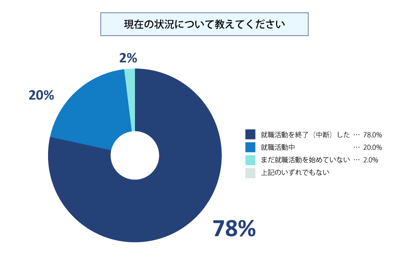 博士課程3年相当(2025年度に修了予定)の学生に対して就活状況を聞いた結果は、以下の通りです。