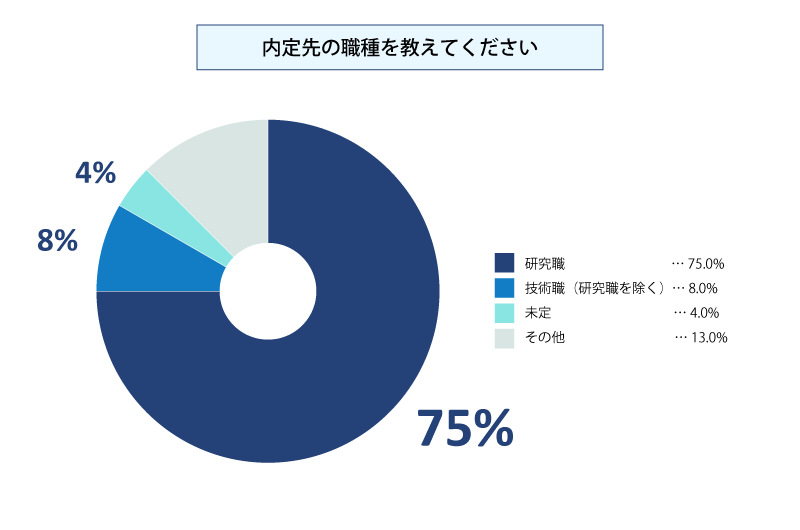 75%の博士が研究職に就き、8%が技術職でした。