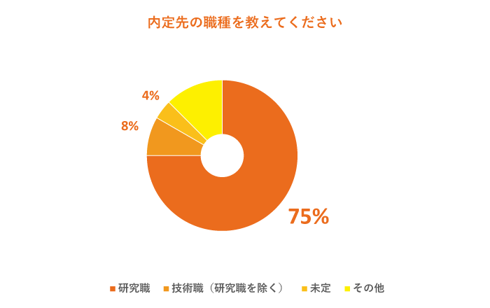上記の通り、学部生の内定率が72.9%なのに対し、博士の内定率が78.4%となりました。