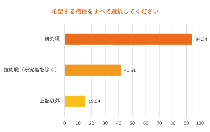 博士学生の94%が、研究職に就きたいと考えているようです。